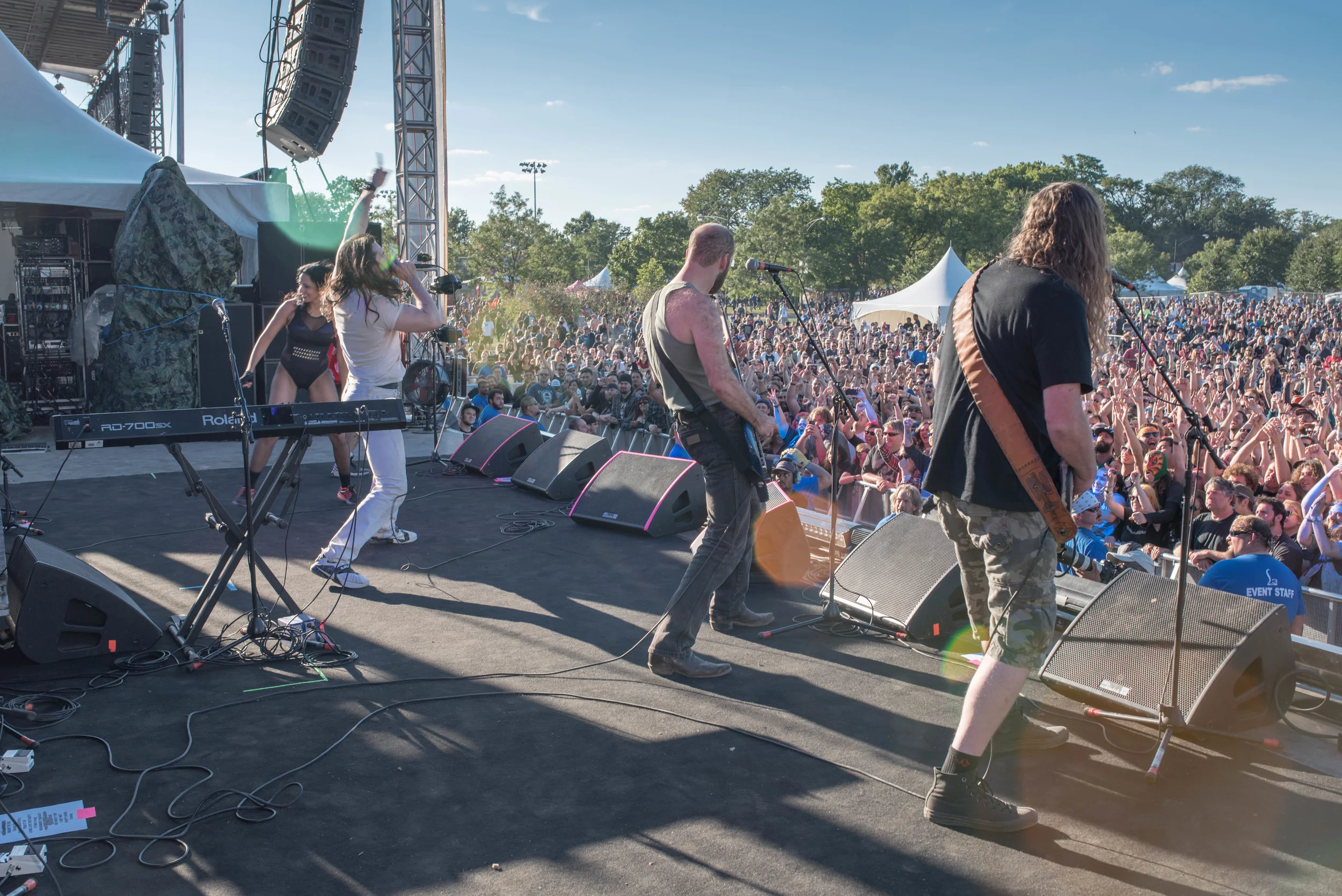 In March of 2015, I was given the opportunity to photograph Revolution Brewing's 5 Year Anniversary at the Riviera Theater. After buddying up in the green room with Andrew W.K. and his wife Cherie Lily, I went on stage to shoot their headlining set. I suppose they liked me and my photos enough, to invite me back to shoot their performance at Riot Fest in Chicago this year.